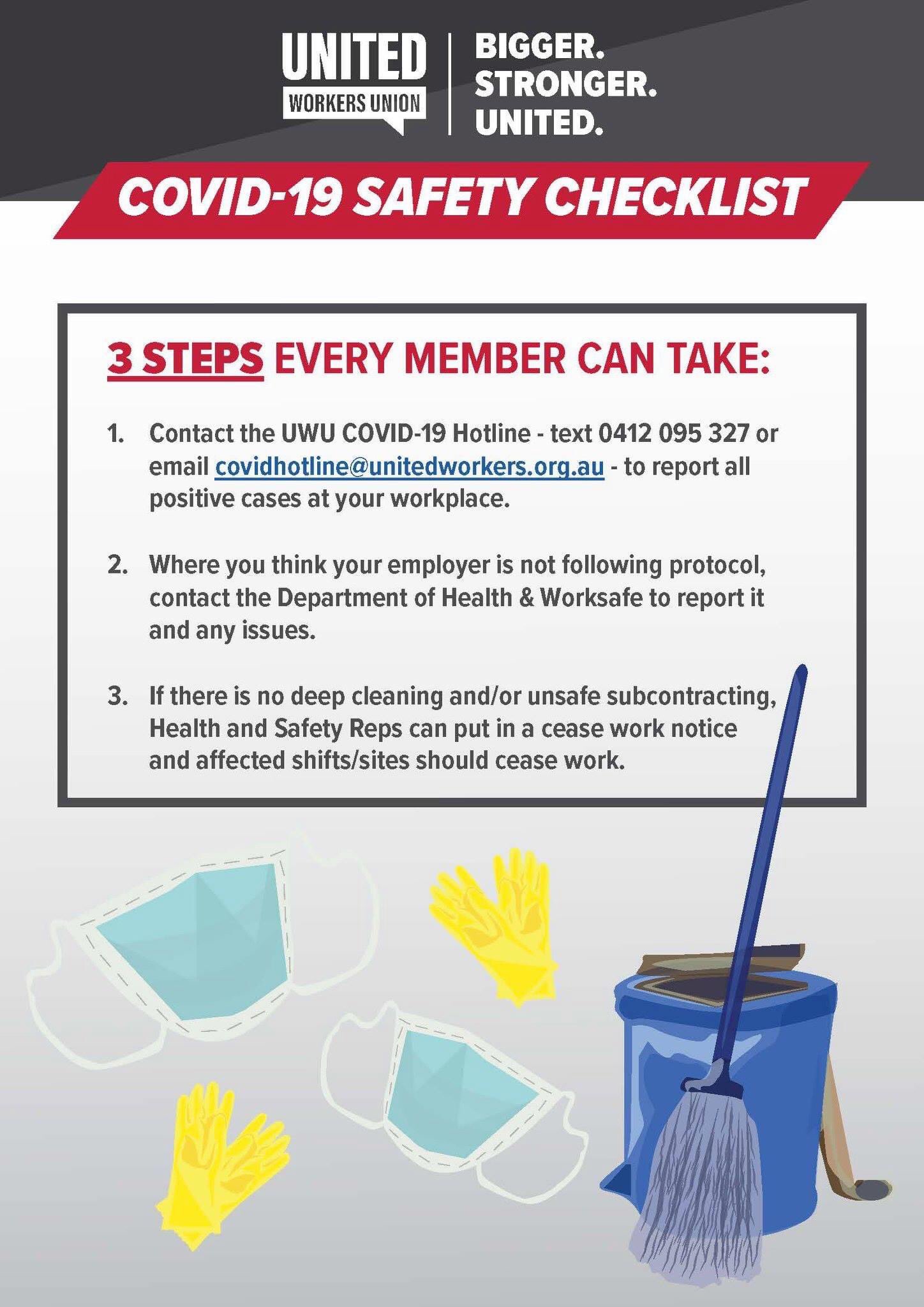 United Workers Union On Twitter For Members Please See The Following Checklist If Health Procedures Aren T Being Followed In Your Workplace Let The Union Know Https T Co Vcghwzewzh